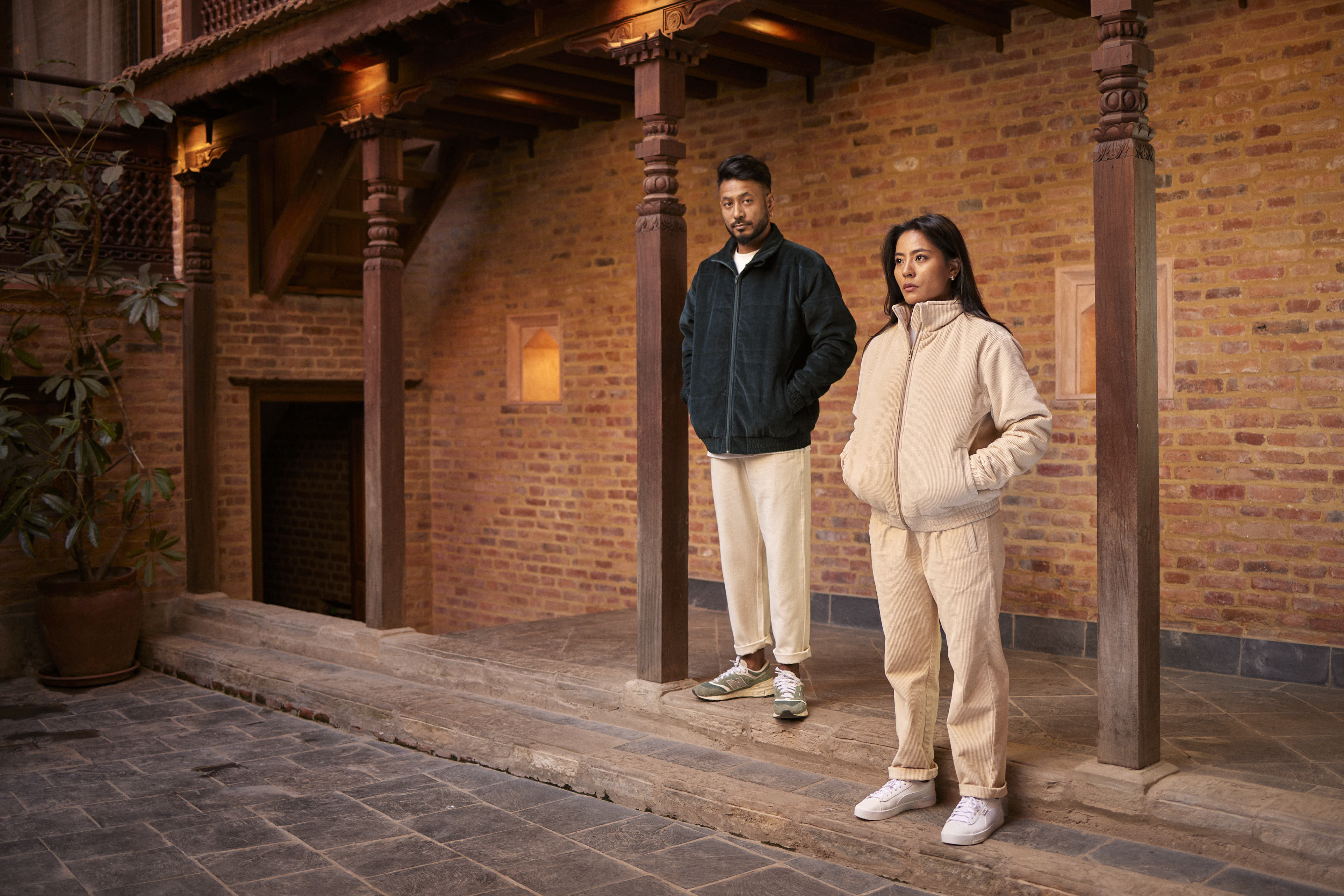 The Rubey Jacket in beige corduroy. Featuring a two-layer polyfill lining, this jacket is designed to keep you warm and cozy. The high-neck collar provides extra protection from the chill, while the soft inside lining ensures a comfortable fit. The jacket also features two outside pockets and an inner pocket for convenience.