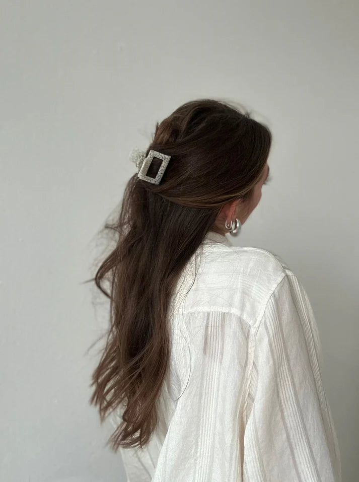The JOSEFIN clip is suitable for both finer and thicker hair. It is large enough to pin up all of your hair, but can also be used for a half bun.