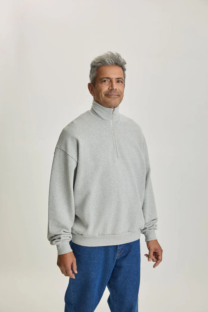 An ultra-soft half-zip soft cotton sweatshirt — an essential layer for winter.