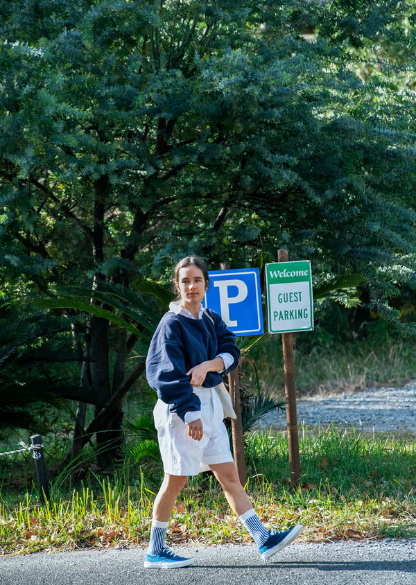 Rototo Socks Vertial Stripes White/Royal Blue