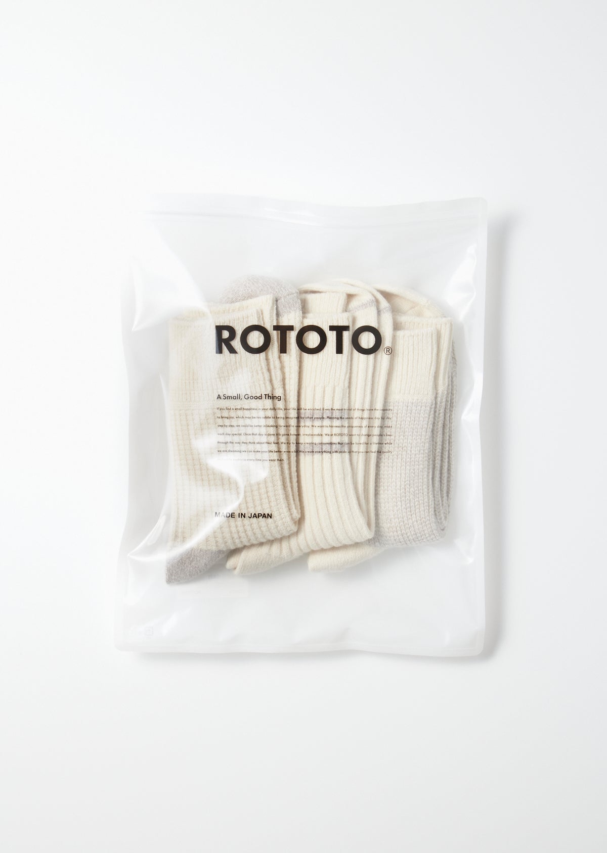Rototo Daily Recycled Cotton/Wool Socks 3 Pack Off-White/Grey