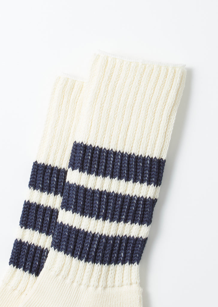 Designed based on tube socks made in the U.S. in the late 1970s, these ribbed socks are knitted with a special knitting machine that is hard to find today, using low-count supple cotton yarn. The liner of the sole is brushed for a unique bouncy feel that only ROTOTO can create. Rototo socks are all made in Japan.