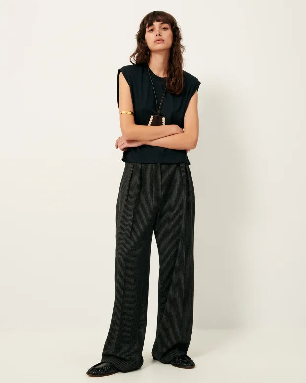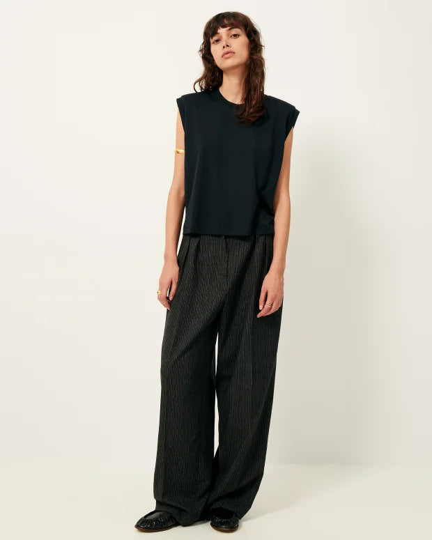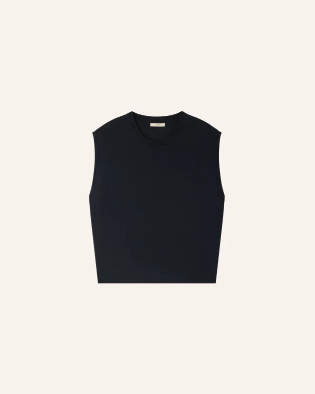 Sleeveless crew-neck T-shirt with shoulder pads, in lightweight jersey crafted in Portugal.