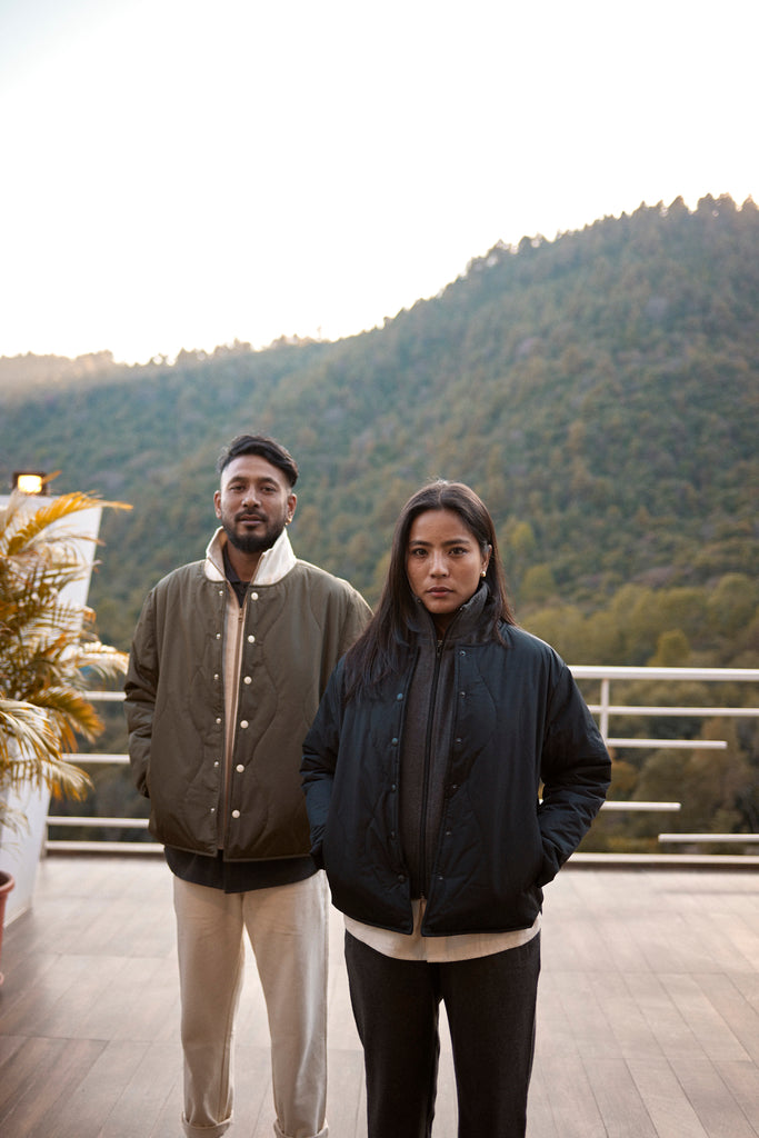 The Selina jacket in black. Made from durable polyester, this jacket offers both warmth and style with its quilted design. Lightweight yet resilient, it’s perfect for layering during cooler days. The Selina Jacket combines practicality and a sleek, modern look. Sustainably produced in Kathmandu, Nepal.