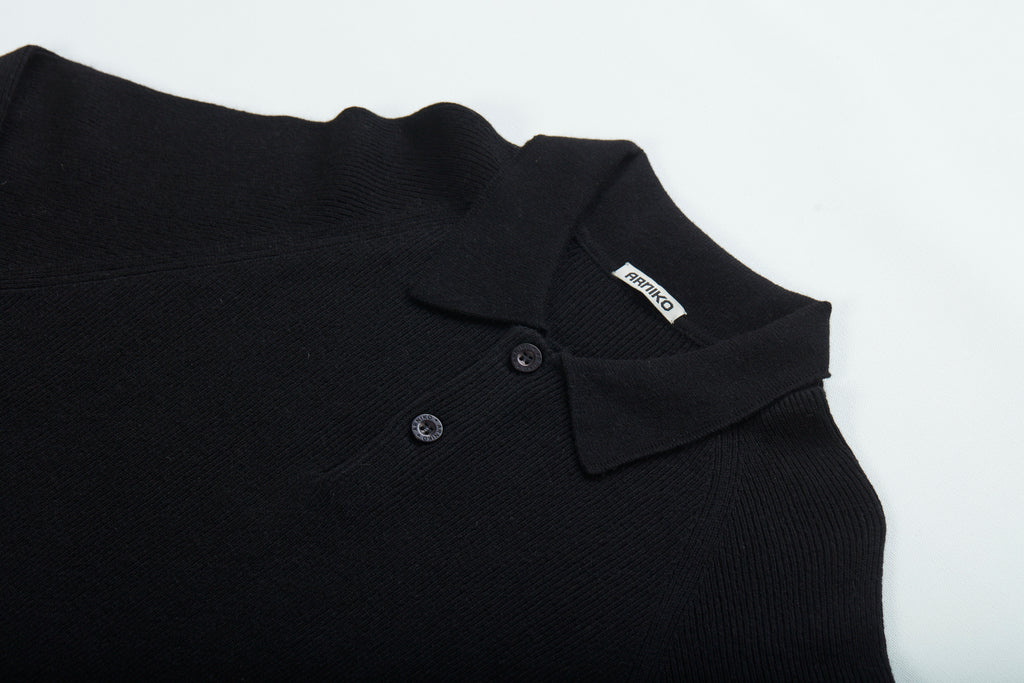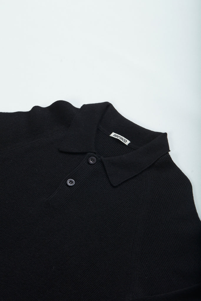 Arniko's Marvin knit in black is unisex and comes with a button collar. Itis made out of 90% merino wool and 10 % Cashmere. Sustainably made in Kathmandu, Nepal.
