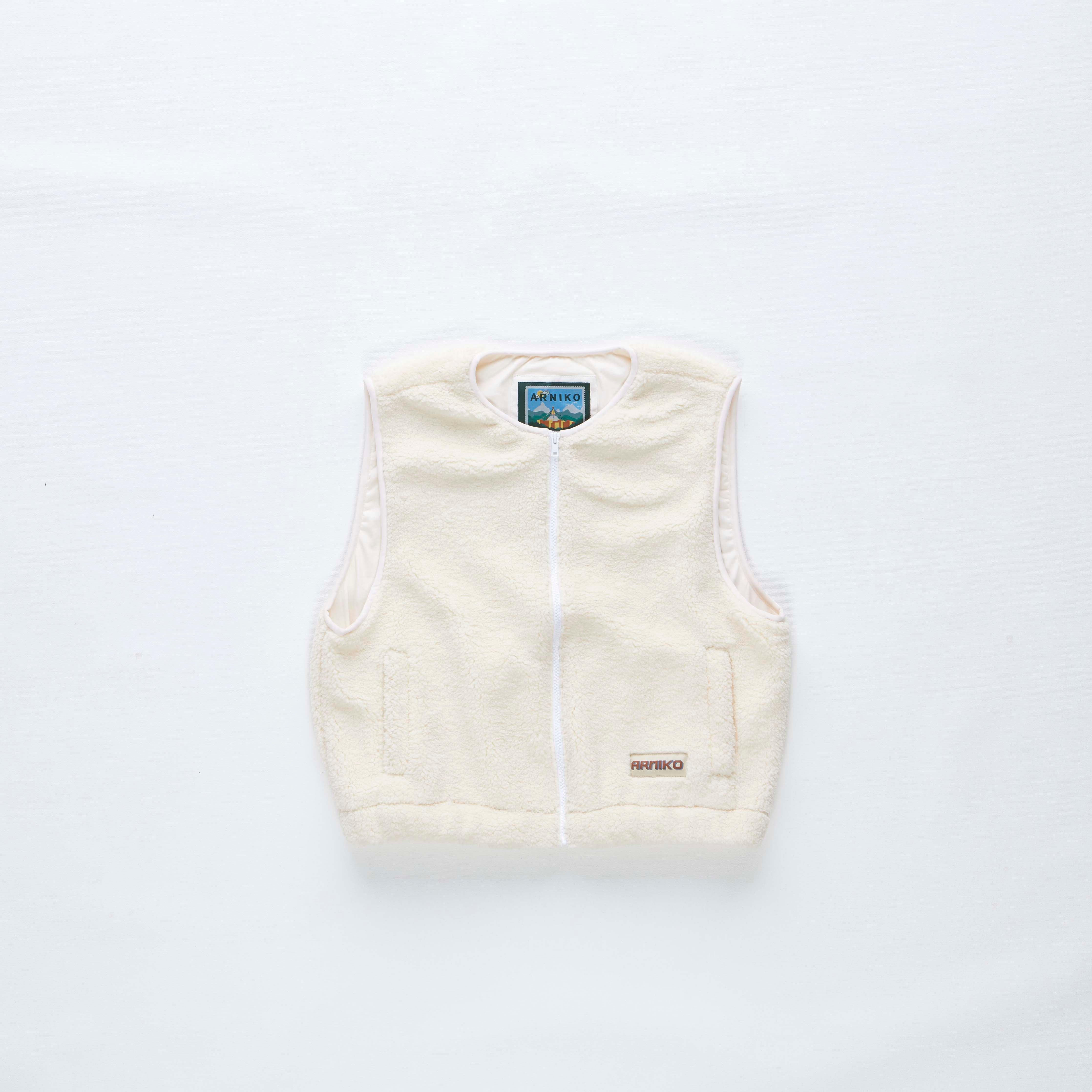The Moha vest in off white. Made from 100% recycled PET, this versatile vest features a full zip design for easy wear and a comfortable fit. The elastic hem helps keep the wind out, ensuring you stay cozy in cooler weather. The fleece-like texture make this piece a great choice for outdoor adventures. Sustainably produced in Kathmandu, Nepal.